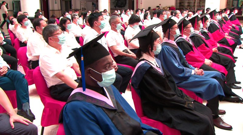 留学生代表、经济学院国际经济与贸易专业韩国籍学生金熙泰代表2020届58名本科和硕士毕业留学生发言,他表达了对母校的热爱与感谢,并表示毕业留学生们将会在世界各地关注着母校的发展,关注中国的发展,做中国连接世界的纽带。
