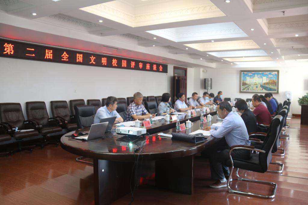 8月21日上午,省教育工委第二届全国文明校园创建工作考核组来校检查指导。考核组以李广才为组长,由省教育工委宣传部二级调研员杨臣带队,一行7人对我校创建全国文明校园工作开展情况进行评审。学校在行政楼三楼会议室召开评审工作会议,党委书记孙先民出席会议并作报告,党委副书记刘吉昌,宣传部、办公室、学生工作部、校团委、学生处和后勤管理处负责人参加会议。