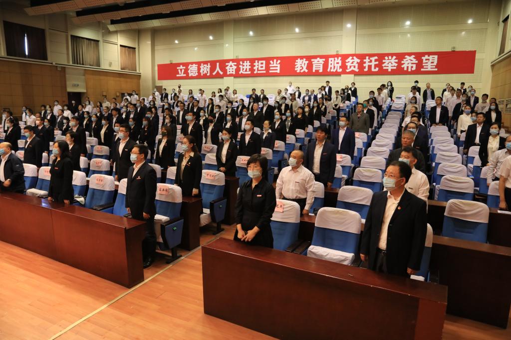 9月9日下午,我校在国际会议厅召开庆祝第36个教师节表彰大会暨学期工作部署会议。全体校领导出席会议,校督学,校直各单位党政负责人,教研室主任代表,青年教师代表,受表彰集体、个人代表,2020年新入职教师代表,学生代表参加会议。校党委副书记杨殿军主持会议。