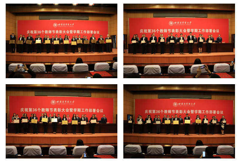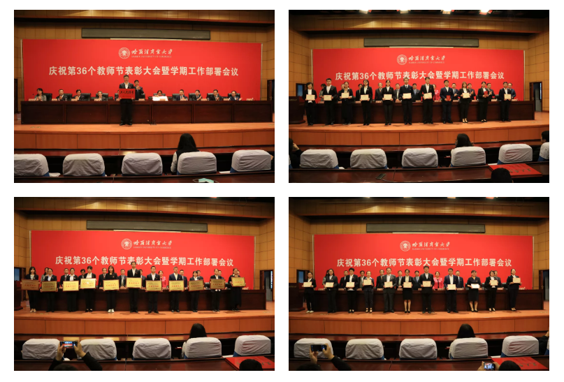 副校长程伟宣读2019年获得国家项目及获得省级以上科研奖励教师名单。副校长张林宣读获省级以上荣誉教师名单。副校长于树彬宣读2020年黑龙江省“工人先锋号”表彰文件。校党委副书记刘吉昌宣读学校2019—2020年度“先进党组织”“优秀共产党员”和“优秀党务工作者”的表彰决定。纪委书记孟凡龙宣读2019年度“先进集体”“先进个人”的表彰决定。校工会主席李晓梅宣读学校“三八”红旗集体、“三八”红旗标兵岗、“杰出巾帼工作者”和学校2019—2020年度“三育人”先进集体、先进个人的表彰决定。校领导为获得荣誉的集体、个人颁奖。