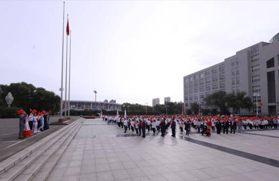 早晨8点,国旗班方阵踏着整齐有力的步伐、以昂扬向上的风姿护卫国旗入场。全场肃穆,伴随着雄壮的国歌声,鲜艳的五星红旗冉冉升起。一张张年轻的面孔显现出庄重,一道道坚毅的目光充满了对伟大祖国美好未来的憧憬。升旗仪式结束后,四位同学声情并茂地朗诵诗歌《我的祖国》,以诗歌弘扬中华文化,以朗诵祝福祖国母亲。全体师生挥舞着手中的五星红旗,伴随着优美的旋律,深情歌唱《我和我的祖国》,用歌声抒发对伟大祖国的深深挚爱,倾诉对伟大祖国的拳拳真情。