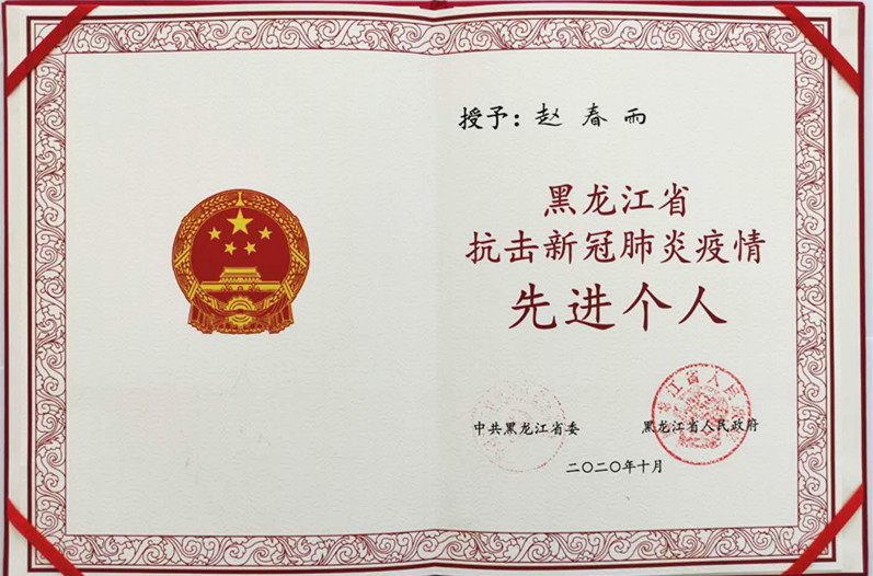 10月21日上午,黑龙江省抗击新冠肺炎疫情表彰大会隆重举行。大会对黑龙江省抗击新冠肺炎疫情先进个人、先进集体,黑龙江省优秀共产党员、黑龙江省先进基层党组织进行表彰。我校党委书记孙先民参加会议。我校国际交流合作处处长赵春雨同志荣获黑龙江省抗击新冠肺炎疫情“先进个人”称号。