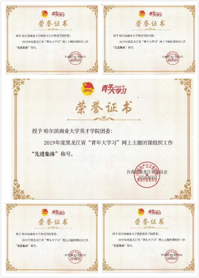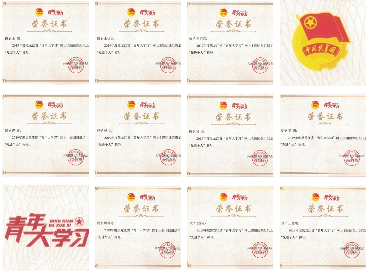 近日,共青团黑龙江省委员会下发了《关于表扬2019年度黑龙江省“青年大学习”网上主题团课组织工作先进个人、先进集体、先进组织单位的通报》,我校英才学院团委、经济学院团委、财政与公共管理学院团委、外语学院团委、旅游烹饪学院团委被授予“全省青年大学习先进集体”称号;许蕾、吴竞、王梁、王佳丽、王京京、王德娟、杨晶、罗楠、姚春艳、殷莎莎10名同志被授予“全省青年大学习先进个人”称号。