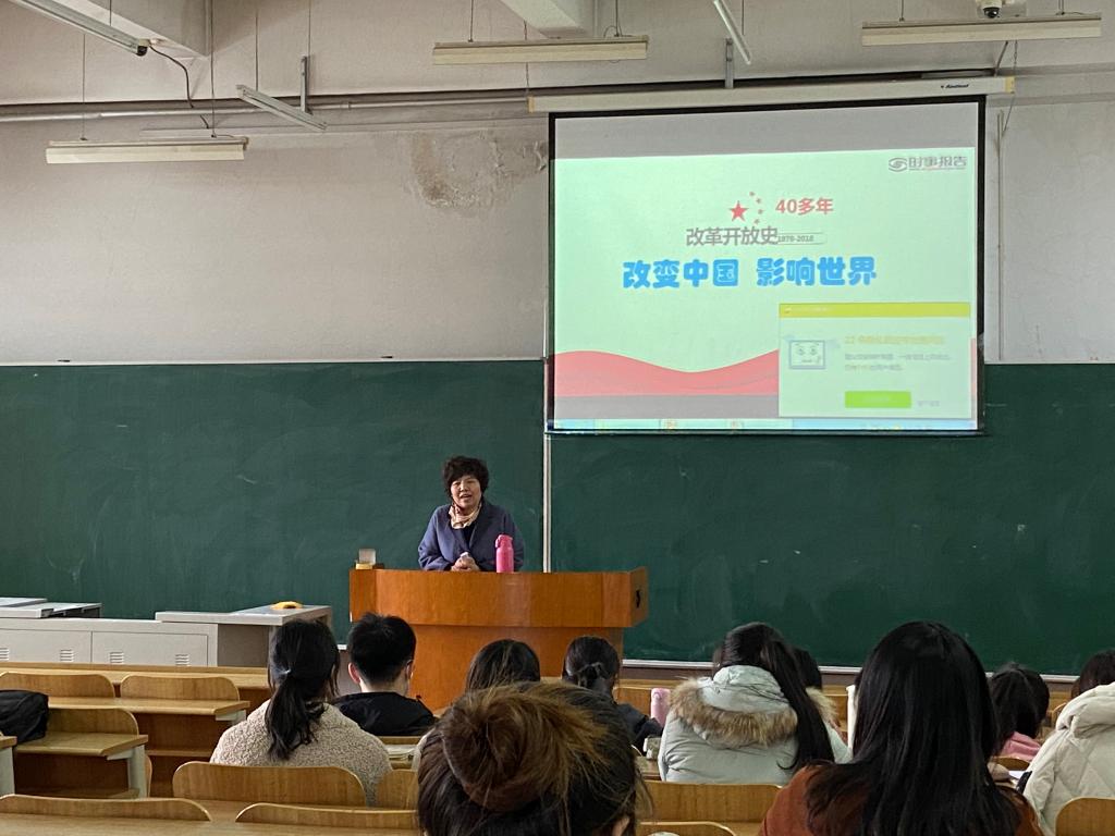 马克思主义学院院长于景洋教授以“领导体制变革与国家治理体系和治理能力现代化”为主题,围绕党和国家领导体制变迁对国家治理体系和治理能力现代化的影响做了精彩的国史专题讲座;裴桂清教授在改革开放史专题讲座中深入分析了改革开放“改变中国,影响世界”的深刻影响力;原理教研室主任张薇做了“科学社会主义的纲领文献《共产党宣言》及当代价值”的社会主义发展史专题讲座;纲要教研室主任李洁以“不忘初心,红色起点”为题,进行了党史专题讲座,从红色起点开启了一段对中国共产党诞生艰难历程及其代表人物命运沉浮的红色追寻之旅,在党史回望中涵养初心。谷宇新副教授在“中国共产党的工作重心转变的历程”的党史专题讲座中系统分析了中国共产党三次工作重心的转移及其深远影响。接下来,徐业滨教授将以“学党史国史,做有为青年”为题、陈江波副教授将以“开启新时代的伟大征程”为题、丁东宇教授也将在对社会主义发展史深入研究的基础上做专题讲座。