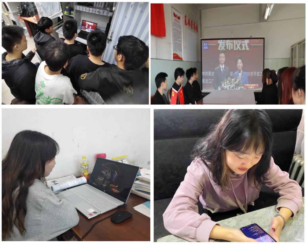 广大师生在会议室、办公室、教室、寝室等场所,通过黑龙江广播电视台公共农业频道、“极光新闻”APP、“龙视频”快手号等媒体平台观看发布仪式,并把观看发布仪式作为强化党的政治建设的重要抓手,以党支部、团支部、班级为单位,以专题党课、主题团日和主题班会的形式开展学习宣传。