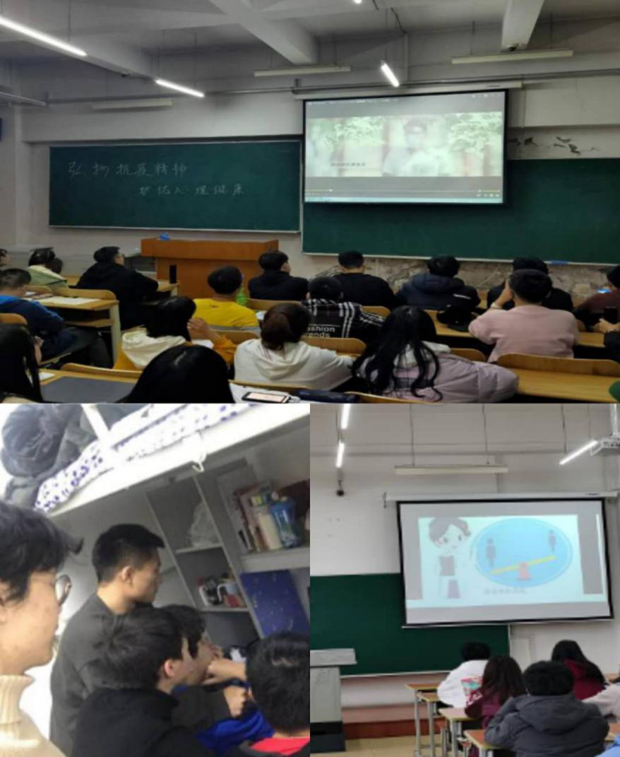 播放心理健康公益宣传片。为广泛开展科普宣传和健康教育,积极开展新冠肺炎疫情相关的心理健康知识教育,英才学院、旅游烹饪学院、轻工学院等学院以班级、寝室为单位组织学生观看省卫健委制作的大众人群在疫情期间心理调适和青少年在青春期逆反、网瘾等认知方面的公益宣传片,帮助学生了解青少年心理健康问题,掌握疫情期间心理调适方法技巧,提升大学生心理健康水平。