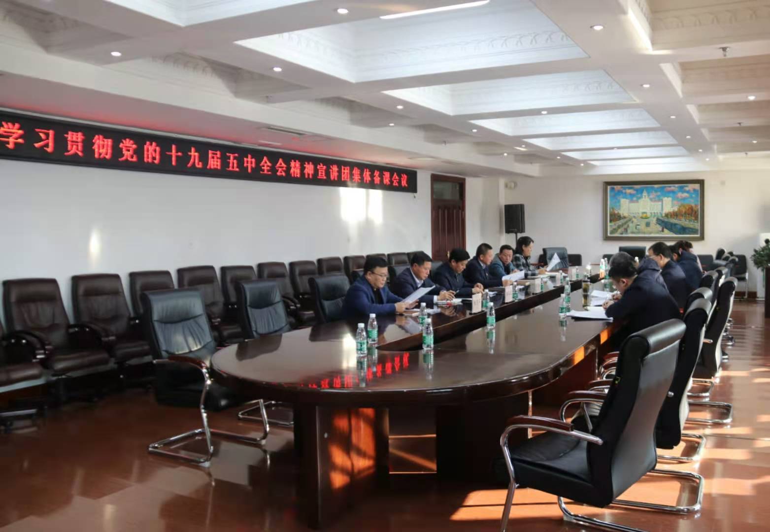 为迅速掀起学习贯彻党的十九届五中全会精神的热潮,引导广大师生把思想和行动统一到全会精神上来,切实用全会精神武装头脑、指导实践、推动工作,11月27日上午,我校在行政楼三楼会议室召开学习贯彻党的十九届五中全会精神宣讲团集体备课会。校党委书记孙先民,党委副书记刘吉昌,纪委书记、监察专员孟凡龙,副校长于树彬、张志军,校工会主席李晓梅出席会议,宣讲团成员参加会议。孙先民主持会议。