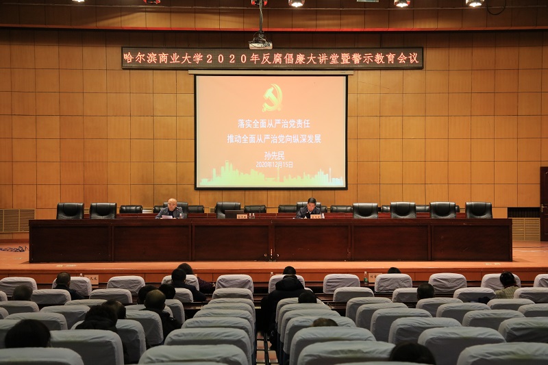 12月15日下午,我校在国际报告厅召开2020年反腐倡廉大讲堂暨警示教育会议。校党委书记孙先民,校长郑秋鹛,校党委副书记刘吉昌,纪委书记、监察专员孟凡龙出席会议;纪委委员、基层党组织纪检委员、特邀纪检监察员,副处级以上干部参加会议。孟凡龙主持会议。