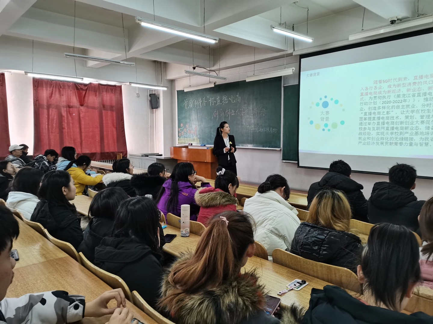 12月13日,由省商务厅、省工业和信息化厅、省教育厅、道里区人民政府、哈尔滨商业大学联合主办,哈尔滨商业大学直播电商产业学院承办的首届“创青春”直播电商创新创业大赛在我校职教楼顺利举行。