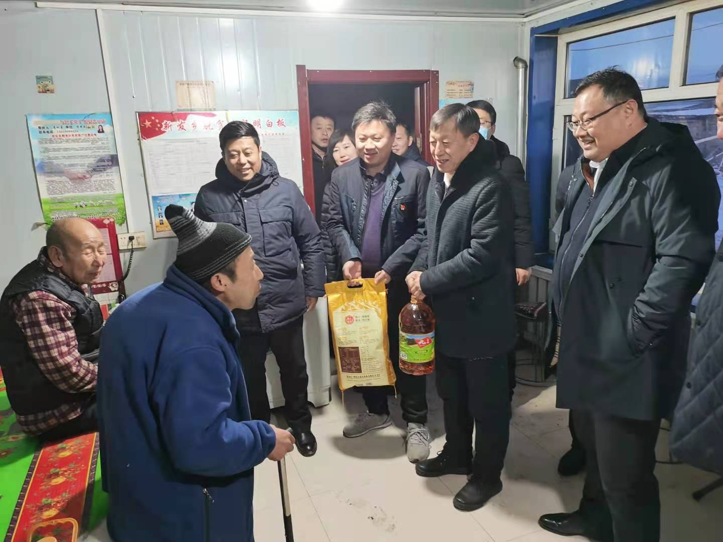 孙先民一行先后来到福来村村民王明贵、姜喜君家中,为他们送去生活用品和节日祝福,详细了解他们的身体状况、家庭收入来源以及生活中面临的实际困难等情况,认真倾听其发展产业的意向和帮扶需求,并与我校工作队员现场制定下一步帮扶举措。