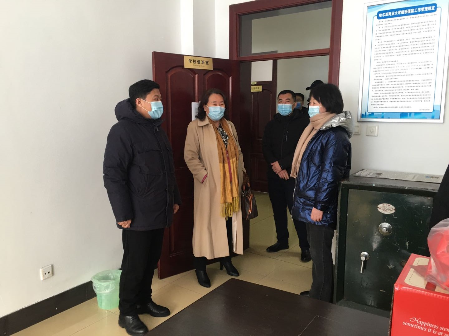 在走访过程中,校领导详细了解各单位值班值守情况,现场检查供电供水供热设备运行及维护情况,要求各单位负责同志在节日期间要以更高标准、更严要求、更实举措,严格落实校园疫情防控措施,定期进行重点人员核酸检测,持续加强校园安全保卫巡逻和门岗执勤,加强消防安全隐患排查整治,加强应急预案演练,提升应急处置能力,多措并举全力做好疫情防控和校园安全稳定工作。接受慰问的教职工对学校给予的关心和关怀表示感谢,并表示将继续坚守岗位,认真履行岗位职责,为全校师生欢度新春佳节提供坚实保障。