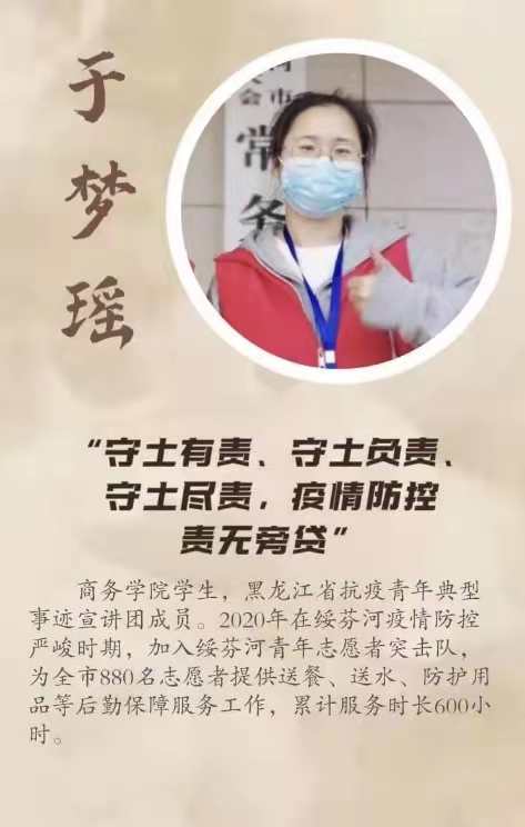 自新冠肺炎疫情爆发以来,无数哈商大青年志愿者秉持着“奉献、友爱、互助、进步”的志愿服务精神,胸怀大局、勇于担当,积极主动投身到家乡、校园疫情防控工作中,以实际行动诠释着新时代的“雷锋精神”。