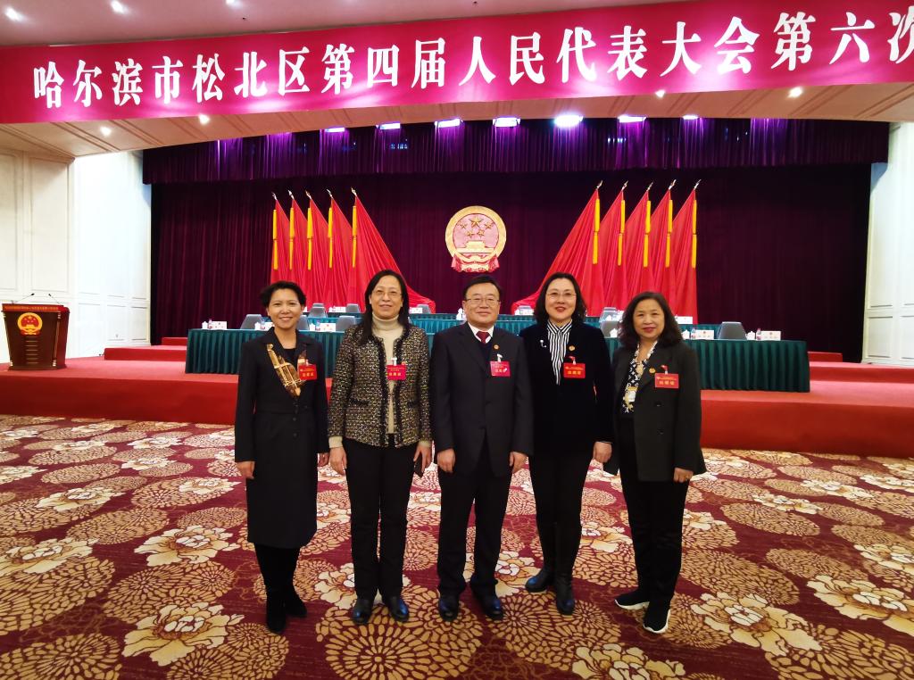 松北区人大代表张志军、侯雪筠,政协常委景侠、委员卢翠莲和李文在会议上