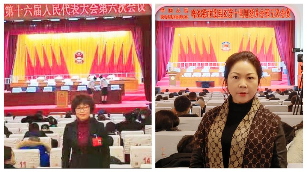 哈尔滨市政协常委辛嘉英、委员陈敏和鲁啸军在会议上