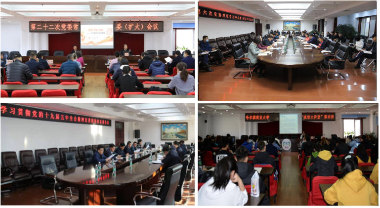 理论辅导深入学。近年来,学校党委积极探索新时期理论宣讲工作的创新与实践,抓队伍、搭平台、建机制、强支撑,持续推动理论宣讲工作向基层延伸。2020年,依托由校领导、思政课教师、专家学者、学工干部组成的宣讲团,开展“下沉式”理论宣讲辅导,一体推进党的十九届五中全会精神和省委十二届八次全会精神的学习贯彻,面向基层学院、职能部门、机关党委、学生党支部书记、“青马工程”学生骨干、全校博士生以及校院两级学生组织、学生社团骨干等开展宣讲阐释活动20场。充分发挥学校“习近平新时代中国特色社会主义思想研究会”“习近平新时代中国特色社会主义思想学习社团”“新时代 新思想 新征程”青年论坛以及“太阳岛讲坛”“诚信大讲堂”的辐射带动效应,联合开展科研攻关、学术研讨、课题申报、撰写理论文章等,在全覆盖、重创新、求实效上下功夫,推进“四史”学习教育内化于心、外化于行。