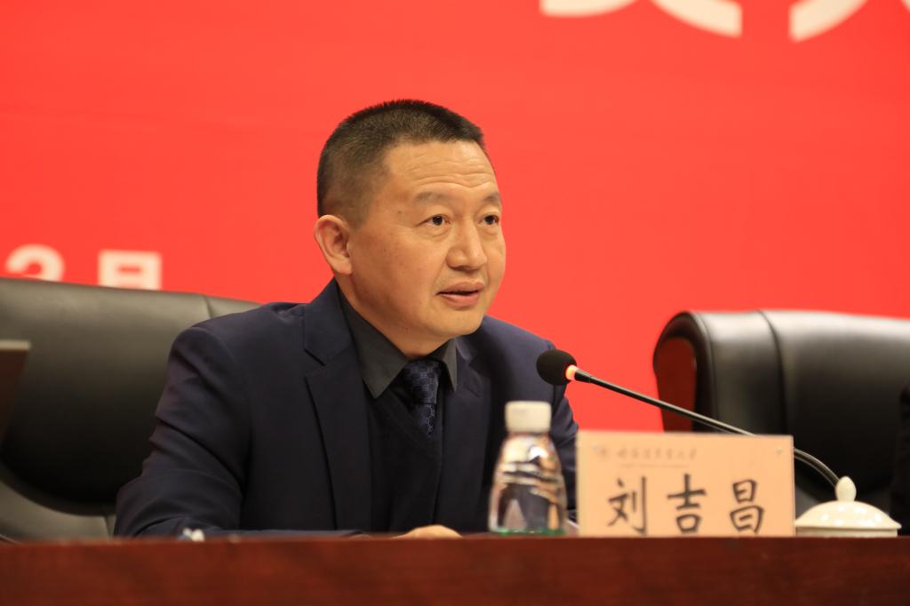 刘吉昌在讲话中指出,在全党开展党史学习教育,是党中央立足党的百年历史新起点、统筹中华民族伟大复兴战略全局和世界百年未有之大变局、为动员全党全国满怀信心投身全面建设社会主义现代化国家而作出的重大决策。全校上下要切实把思想和行动统一到习近平总书记重要讲话精神和党中央决策部署上来,深刻认识开展党史学习教育的重大意义,扎实学好党史这门必修课,进一步增强开展党史学习教育的思想自觉、政治自觉、行动自觉,把学习习近平新时代中国特色社会主义思想贯穿始终,把学史明理、学史增信、学史崇德、学史力行贯穿始终,把学党史、悟思想、办实事、开新局贯穿始终。刘吉昌对学校开展党史学习教育的学习重点、方法步骤、工作要求等作安排部署。他强调,全校各级党组织和广大党员干部要深入学习领会习近平总书记提出的“六个进一步”重点内容,深刻理解“为什么学”、准确把握“学什么”、精心谋划“怎么学”;全面落实党中央和省委部署要求,对照学校实施方案,抓住重要时间节点,细化各项工作举措,全力抓好潜心自学、专题学习、政治引领、专题培训、实践活动、专题组织生活会和民主生活会等任务安排;科学把握党的历史发展的主题主线、主流本质,牢固树立正确党史观,加强领导、压实责任,强化宣传、营造氛围,知行合一、务求实效,高标准高质量开展党史学习教育,乘势而上为学校“十四五”规划开好局、起好步,以优异成绩迎接建党100周年。