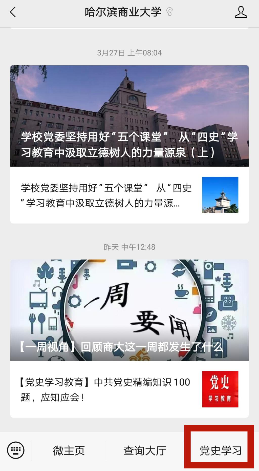 点击右下角“党史学习”栏目