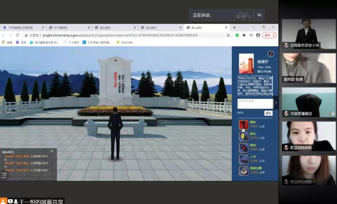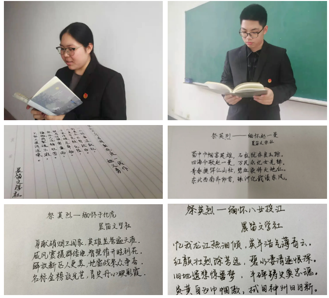 为加强爱国主义教育,弘扬和践行社会主义核心价值观,传承伟大民族精神和龙江“四大精神”,缅怀先烈、先贤,向牺牲的抗疫英雄和扶贫志士致敬,在清明节来临之际,校团委发出了“缅怀革命先烈·传承红色基因”清明祭英烈活动的倡议,我校学生以“云”祭扫、原创诗文征集、诵读、书画作品创作、微视频制作等多样形式开展了“云”端祭扫敬英魂活动。