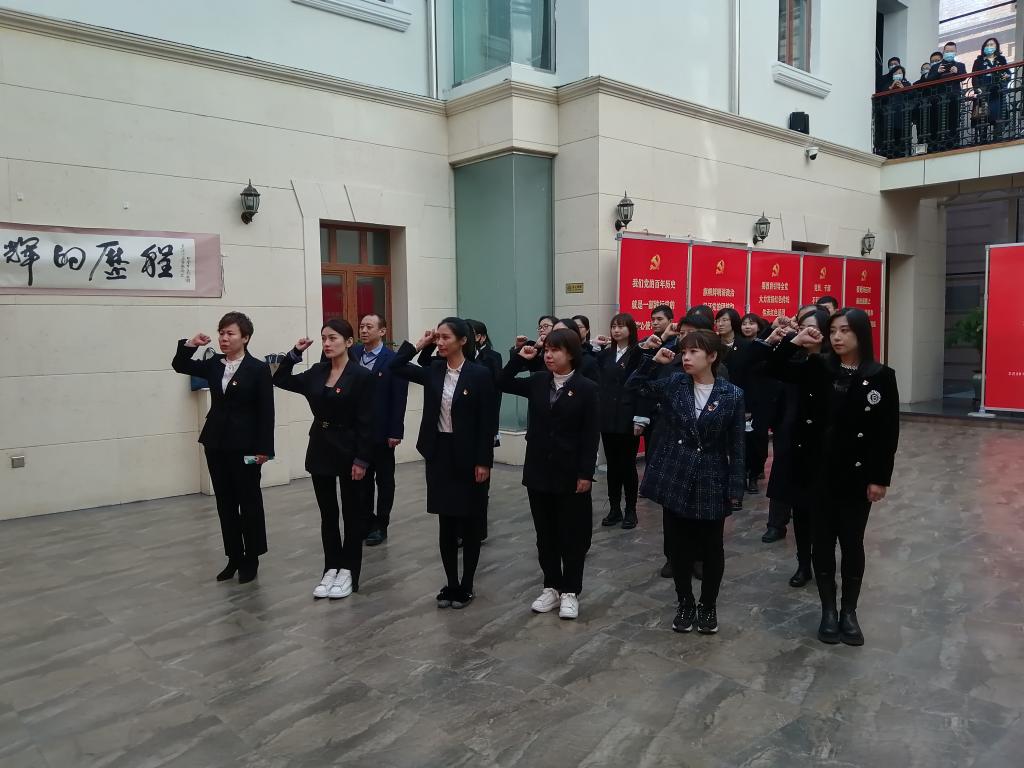 师生们边走边看,认真学习感悟这部“立体”的哈尔滨地方党史,不时驻足仔细观看,认真聆听工作人员的讲解,询问有关情况。纪念馆宣誓厅内悬挂着鲜艳的中国共产党党旗,在学院党委副书记宁晓燕领誓下,全体师生党员面对党旗,一起重温入党誓词,用有力的誓言表达对马克思主义的坚定信仰,对中国共产党的绝对忠诚。
