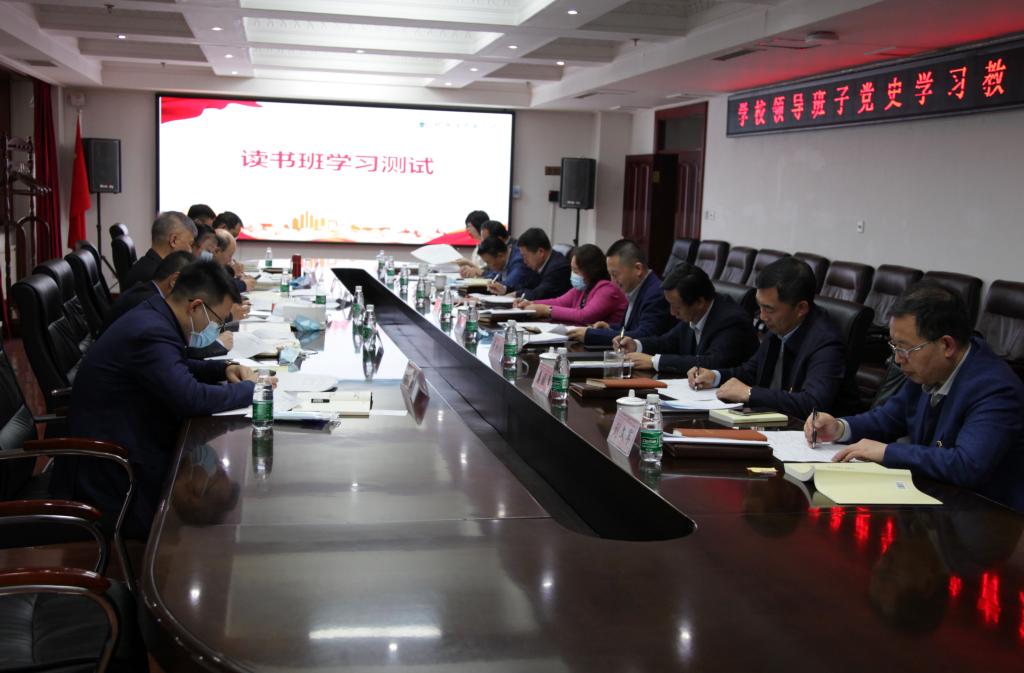 按照学校党史学习教育工作实施方案安排,4月12日下午,学校领导班子党史学习教育第一期专题读书班在行政楼3楼会议室举办。校党委副书记刘吉昌、纪委书记孟凡龙、副校长于树彬、副校长张志军、副校长姜国峰、副校长张林出席读书班,校长郑秋鹛、办公室主任崔本强列席读书班,党委常委、组织部部长刘文军,党委常委、宣传部部长贾妮燕以及学校党委委员参加读书班专题学习。刘吉昌主持读书班。