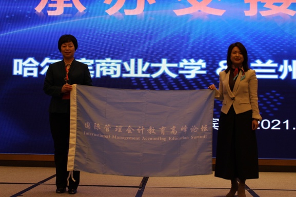 闭幕式由教育部中外人文交流中心、国际管理会计教育联盟秘书长陈滔伟先生主持,哈尔滨商业大学张劲松院长与中国商业会计学会、国际管理会计教育联盟副秘书长马瑞阳博士进行了承办交接,对外经济贸易大学原副校长、联盟理事长张新民教授发表了闭幕式致辞。