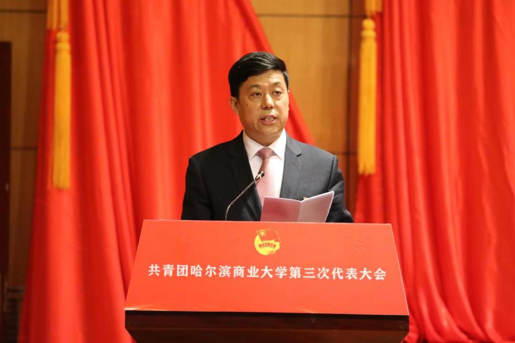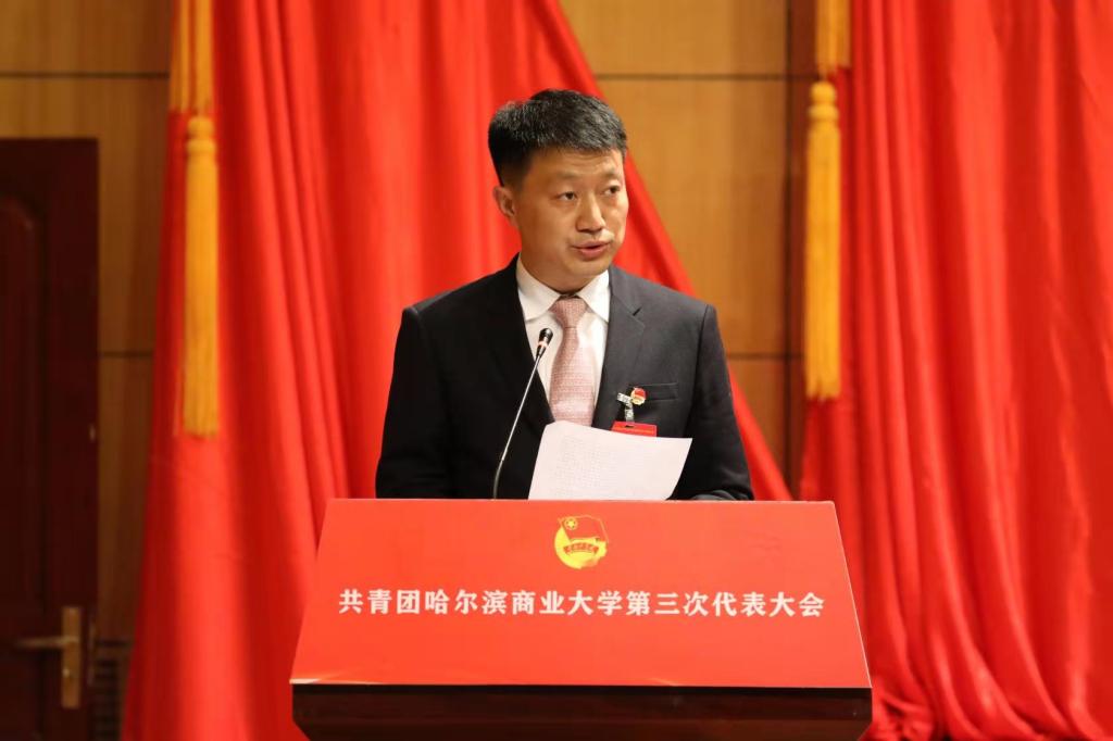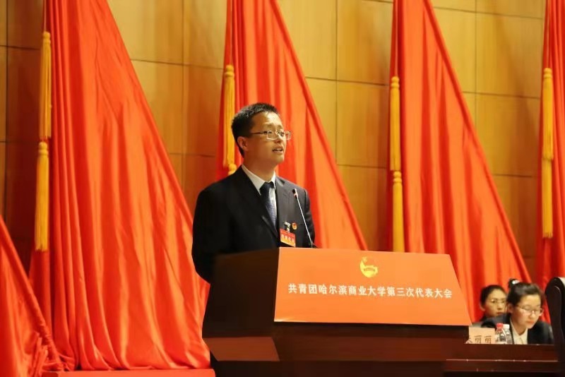 东北林业大学团委书记李晶才代表兄弟院校共青团组织向大会的召开表示祝贺。他代表兄弟高校共青团表示,在多年的并肩战斗中,哈尔滨商业大学团委和兄弟院校团委相重相惜、精诚团结、砥砺奋进、共同发展,在浓厚的团情里结下了忠诚、坚实的兄弟友谊。在未来的岁月里,还将继续与哈商大团委携手谱写龙江高校共青团事业的新篇章。