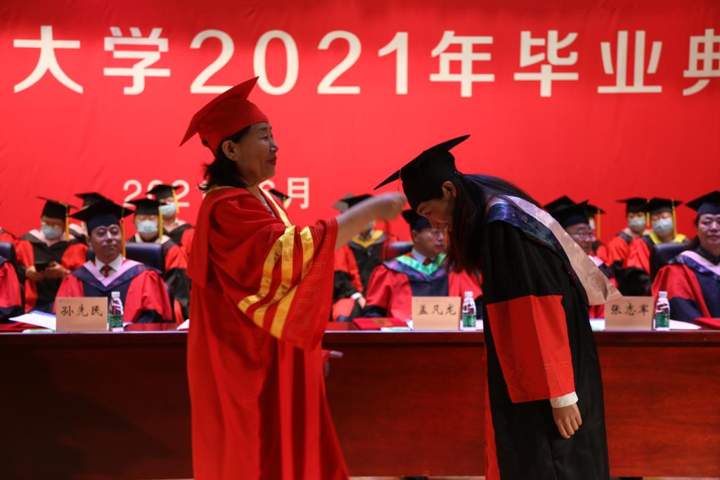 又是一年毕业季,扬帆起航正当时。6月21日上午,我校2021年毕业典礼在B区大礼堂隆重举行。校党委书记孙先民、校长郑秋鹛、校党委副书记刘吉昌、纪委书记孟凡龙、副校长于树彬、副校长张志军、副校长姜国峰、校工会主席李晓梅,校学位评定委员会委员,各学院党委(党总支)书记、院长、副书记,毕业班辅导员,导师代表,毕业生代表(含留学生)等齐聚一堂,温情送别2021届毕业生。校学位评定委员会副主席、副校长张林主持典礼。