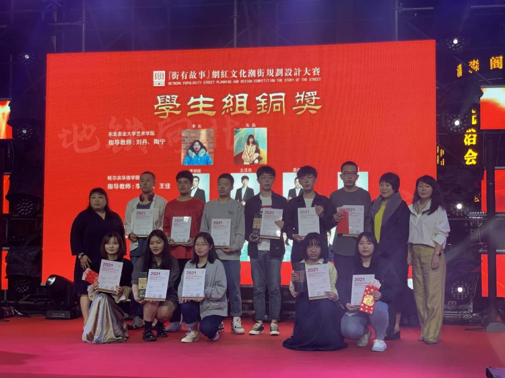 6月19日晚,《街有故事》大学城网红文化潮街规划设计大赛颁奖典礼在中国最北地铁站——大学城站隆重举行。我校设计艺术学院副院长丁凌云与学院环境设计专业教师姜雪、任阿然以及环境设计工作室学生参加典礼。我校师生作品在大赛中荣获学生组铜奖一项、专业组优秀奖一项,我校教师荣获“优秀指导教师”。