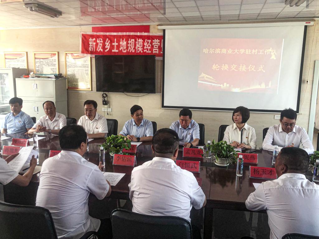 为巩固拓展脱贫攻坚成果,以更实举措助力乡村振兴开新局,按照省委统一部署,学校党委迅速行动、积极统筹,严格按照选派程序和进度安排,扎实做好新一轮驻村工作队选派和轮换工作。6月26日,校党委书记孙先民带队赴依安县调研指导驻村工作,送学校新选派的驻村工作队员刘立峰、夏洪起、王冉3名同志到岗,并在新发乡福来村召开驻村工作队员轮换交接工作会议。校党委书记孙先民、纪委书记孟凡龙及相关部门负责同志,依安县人大常委会副主任李佑滨、依安县委组织部副部长丁锋、新发乡党委书记白恒武、新发乡党委副书记孙旭光,两批驻村工作队员、我校驻新屯乡太民村第一书记章刘成和福来村“两委”参加会议。孟凡龙主持会议。