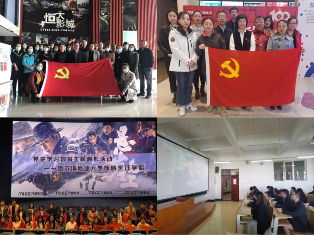 依托学校“一体两翼”文化育人模式,深挖用活龙江红色资源和学校育人资源,组织党员师生、党外人士共计4800余人次,到中共黑龙江历史纪念馆、哈尔滨党史纪念馆、学校商业文化馆等爱国主义教育基地开展参观见学活动90余场,以实物、实景、实例、实事为载体,开展特色学习实践活动,将党史学习教育与专业教学实践有机融合。各基层党委、党总支组织教工党支部、学生党支部观看《悬崖之上》《青春之骏》《建党伟业》《金刚川》《百炼成钢》《大抗战》《南昌起义》《重生》《党史故事100讲》等爱国主义题材电影、视频等,教育引导我校师生铭记历史,弘扬伟大民族精神,深入学习党的艰辛历程和光辉历史,深刻学习体会共产党人对革命的无限忠诚、对党的坚定信念,激发师生爱党爱国爱社会主义热情。各基层党组织以歌唱红色歌曲、朗诵比赛、座谈会、作品展等方式开展主题党日活动。能源与建筑工程学院党委、基础科学学院党委和英才学院党委组织80名党员师生,歌唱红色歌曲《歌唱祖国》,参加红色歌曲接力传唱活动,传承红色基因,致敬建党百年。旅游烹饪学院教工党支部开展“学党史,歌唱红色歌曲”主题党日活动,教师们合唱红色歌曲《歌唱祖国》《没有共产党就没有新中国》。商务学院学生党支部举办“红色剪纸映初心”活动,同学们选取具有代表性的建筑形象来展现党史中的重要事件,通过线条勾勒出建筑物的外观,发挥出传统剪纸艺术传神的作用,以最朴实的手法表达对中国共产党的知恩感恩之情。财政与公共管理学院教工党支部组织“党史诗朗诵”主题党日活动。食品科学与工程专业学生党支部开展“诵读红色经典 感悟辉煌百年”诗词朗诵主题党日活动。能源与建筑工程学院土木工管教师党支部开展《中国共产党简史》诵读活动,支部党员共同回顾了一百年来中国共产党带领人民进行革命、建设、改革的光辉历程。轻工学院学生党支部开展革命故事分享会,由学生党员讲述对自己触动较深的红色故事,以此深化党史学习教育,强化学生的使命责任担当。设计艺术学院党委将党史学习教育与专业教学实践相结合,举办了“长征精神”主题绘画作品展和庆祝建党100周年师生书画摄影作品展。