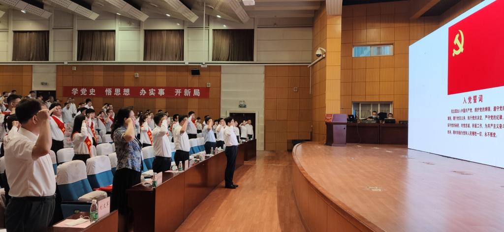 上午9时,大会在庄严的国歌声中正式开始。孙先民领誓,与会师生党员共同重温入党誓词,高亢的誓言声声入耳,激昂的宣誓铿锵不悔,师生党员用有力的誓言表达对马克思主义的坚定信仰,对中国共产党的绝对忠诚。