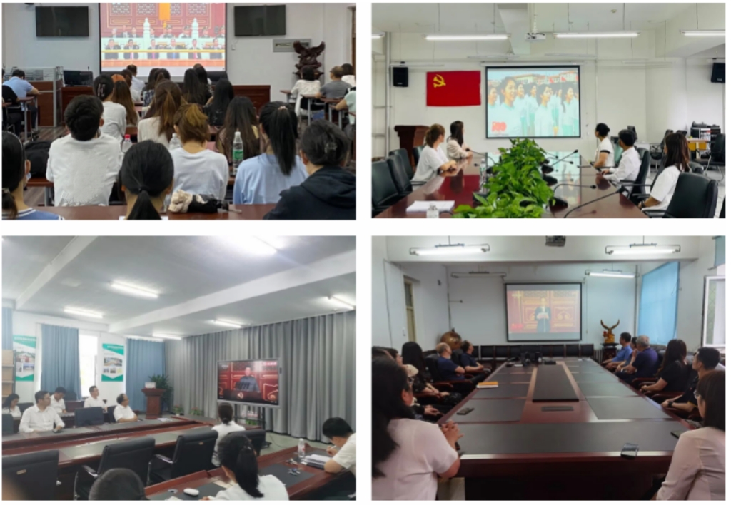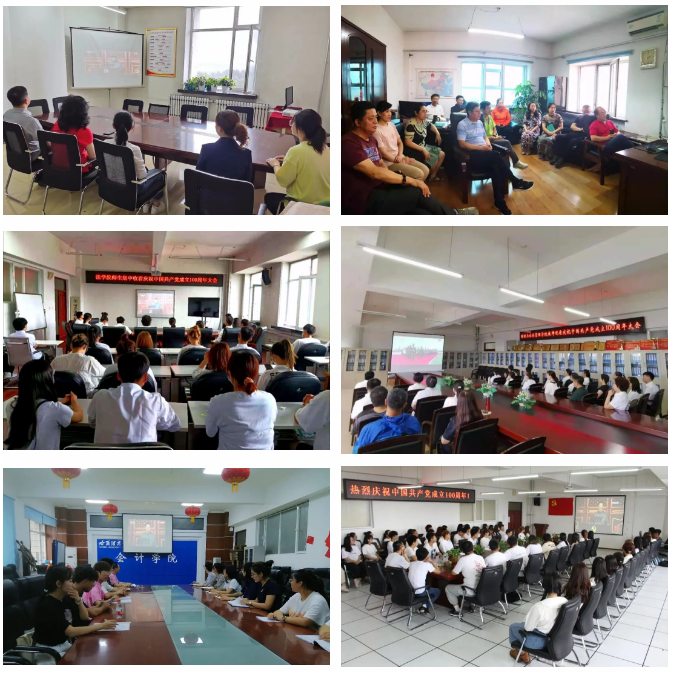 学校领导、党委委员、机关党委全体党员近200名党员干部齐聚学校国际报告厅,全程收看大会实况。学校24个基层党委、党总支采取线下与线上、集中与分散相结合的形式,充分利用会议室、教室等场所组织师生集体收看庆祝活动,广大师生自发通过手机观看大会直播。学校驻村干部在驻地与村“两委”、党员村民一起收听收看庆祝活动。学校“青马工程”培训班骨干、“习近平新时代中国特色社会主义思想学习社团”等以专题思政课形式,通过边收看、边研讨的方式,迅速掀起学习贯彻落实习近平总书记重要讲话精神热潮。习近平总书记的重要讲话在师生中引起强烈反响、广泛热议,师生们纷纷表示,将迅速把思想和行动统一到习近平总书记重要讲话精神和党中央决策部署上来,牢记初心使命,坚定理想信念,践行党的宗旨,进一步凝聚起建设特色鲜明的高水平教学研究型大学、全面建设社会主义现代化新龙江、实现中华民族伟大复兴中国梦的强大合力。