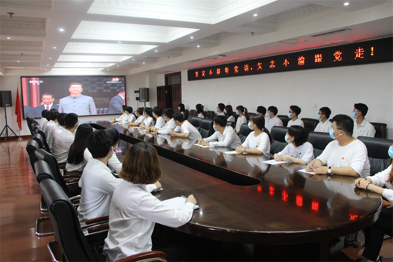 7月1日,庆祝中国共产党成立一百周年庆祝大会在北京天安门广场隆重举行。校团委组织了校学生团委、校研究生会、校学生会、各学院学生团委、学生会骨干代表及学生社团代表,在行政楼三楼会议室集中收看庆祝中国共产党成立一百周年大会盛况,认真聆听习近平总书记的重要讲话,深刻理解和感悟中国共产党百年来带领中国人民为实现中华民族伟大复兴的奋斗历史。