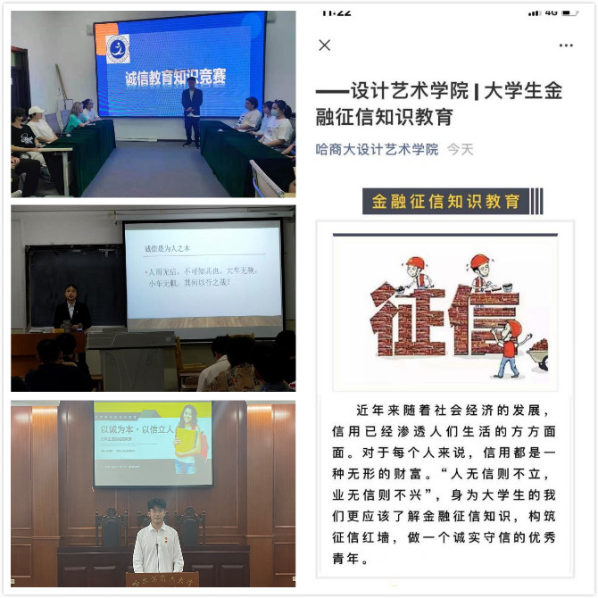 开展学生资助诚信教育主题讲座和特色活动。为持续深入推动诚信校园文化品牌建设工程,增强主题教育活动的实效性,各学院积极响应学校活动,结合自身特色、专业优势,组织学生开展诚信主题讲座、诚信主题演讲、诚信主题征文、诚信知识竞赛、诚信图片展、诚信自强之星评选等系列活动,以学生喜闻乐见的形式开展诚信教育,进一步树立学生诚信观念、感恩意识和责任意识,让学生领会诚信、励志的内容,激发学生诚实守信的良好品质,构建起诚实守信、感恩奋进的校园文化氛围,让诚信在同学们的欢声笑语中深入人心。