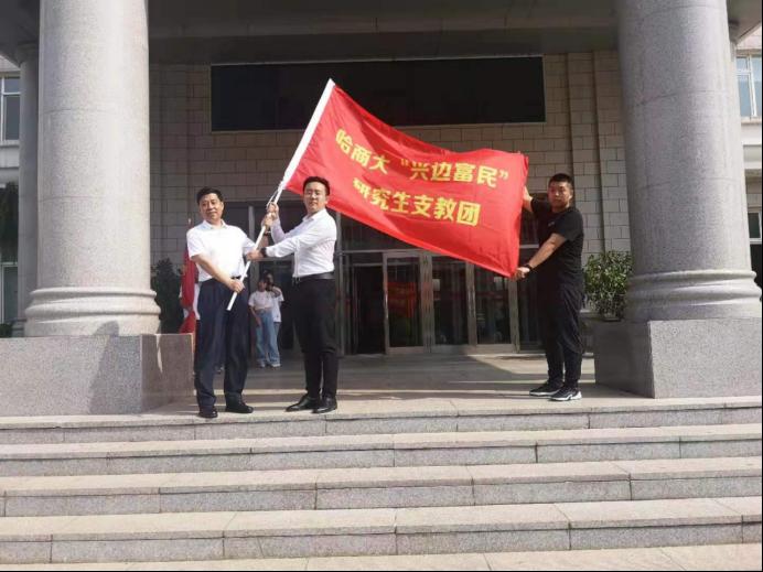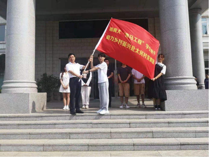 7月15日,伴随着清晨和煦的阳光,我校党委书记孙先民、党委副书记刘吉昌,校工会副主席周鸿武、校团委书记王鹤腾及校团委副书记任婵媛、焦晋鹏在A区行政楼前,为我校“青马工程”学生骨干助力乡村振兴赴齐齐哈尔市依安县太民村、福来村支教团和第二届“兴边富民”研究生支教团送行。
