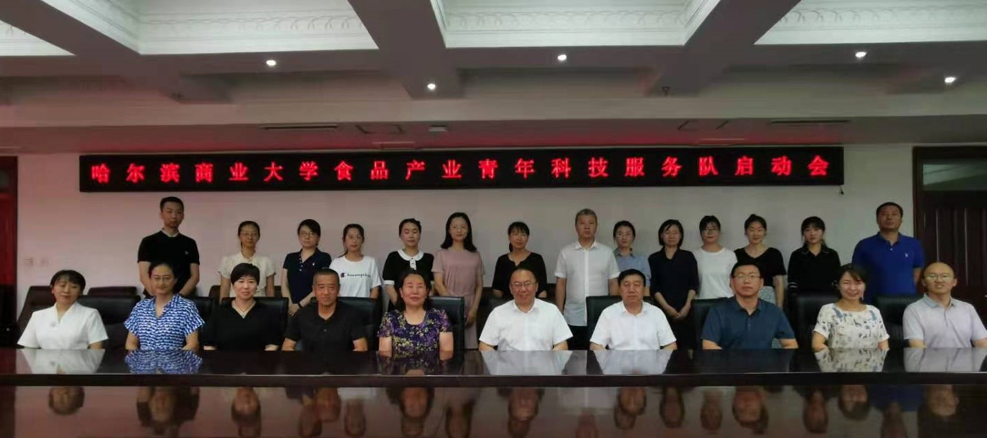 为推进我校大食品学科建设,加快我校科技人才培养,促进科研成果有效转化,更好的服务区域食品企业,实现科研成果与企业需求的精准对接,7月26日上午,由科研处和食品工程学院联合发起的“哈尔滨商业大学食品产业青年科技服务队”启动会在我校行政楼3楼会议室召开。校长郑秋鹛、副校长张林出席会议,科研处处长邱泽国,食品工程学院党委书记王诤、院长马永强、副院长张娜、副院长刘宁、副处级辅导员贺殷媛及志愿服务队20名代表参加启动会。邱泽国主持会议。