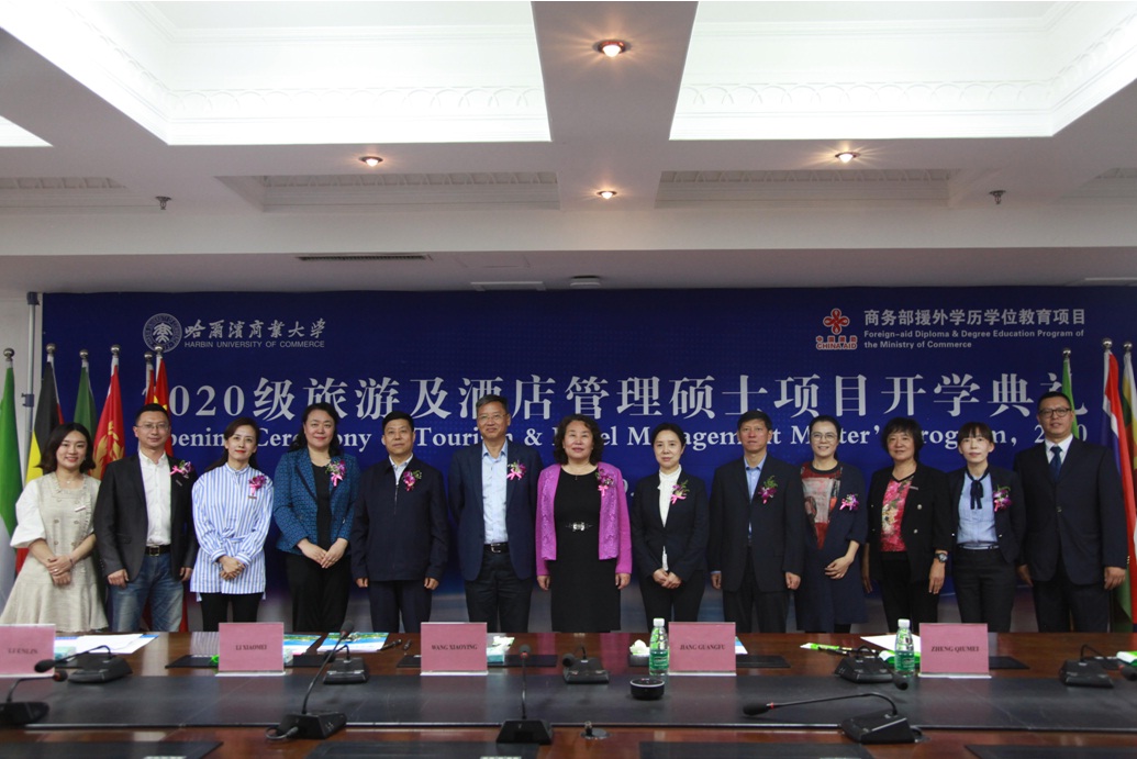 9月15日下午,由我校承办的商务部援外学历学位教育项目“2020级旅游及酒店管理硕士项目”线上开学典礼在A区行政楼5楼会议室举行。黑龙江省教育厅一级巡视员姜广福、黑龙江省教育厅对外合作与交流处处长宗希云、黑龙江省商务厅对外投资和经济合作处一级调研员王晓英,我校党委书记孙先民、校长郑秋鹛、校工会主席李晓梅、国际交流合作处负责人及相关工作人员、旅游烹饪学院教师及来自15个国家和地区的26名留学生参加线下线上开学典礼。典礼由我校国际交流合作处副处长李恩临主持。