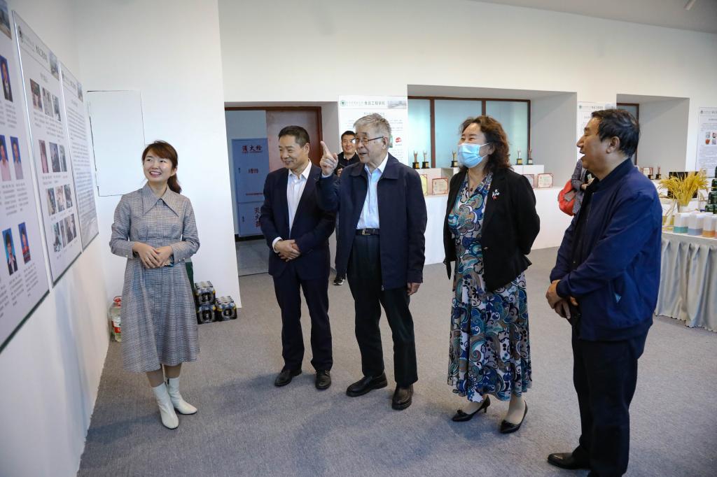 庞国芳院士一行参观了我校东北食药资源开发创新中心。张娜介绍食品工程学院的发展历史、科技成果转化情况及其相关产品和现有中试生产线。庞院士对哈尔滨商业大学食品工程学院现有的成果给予肯定,并就学院学科发展提出指导建议。
