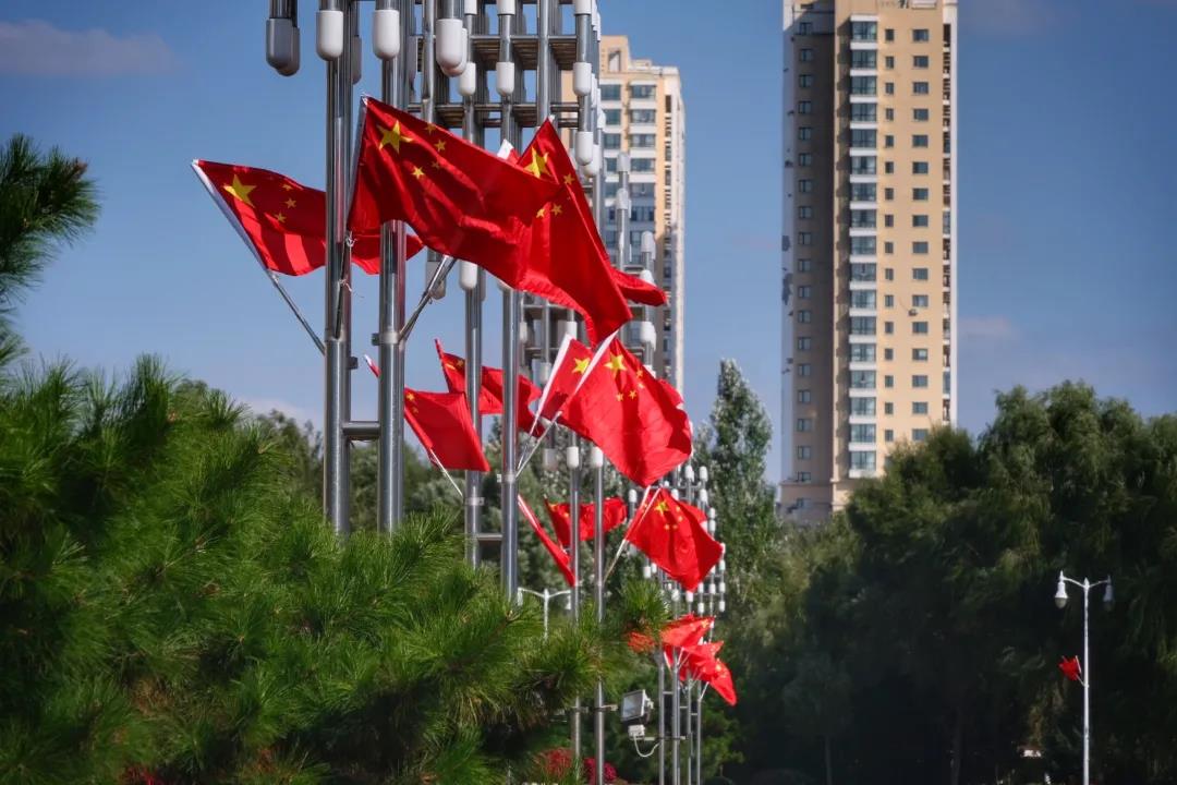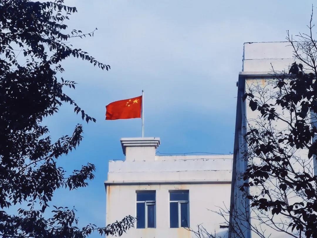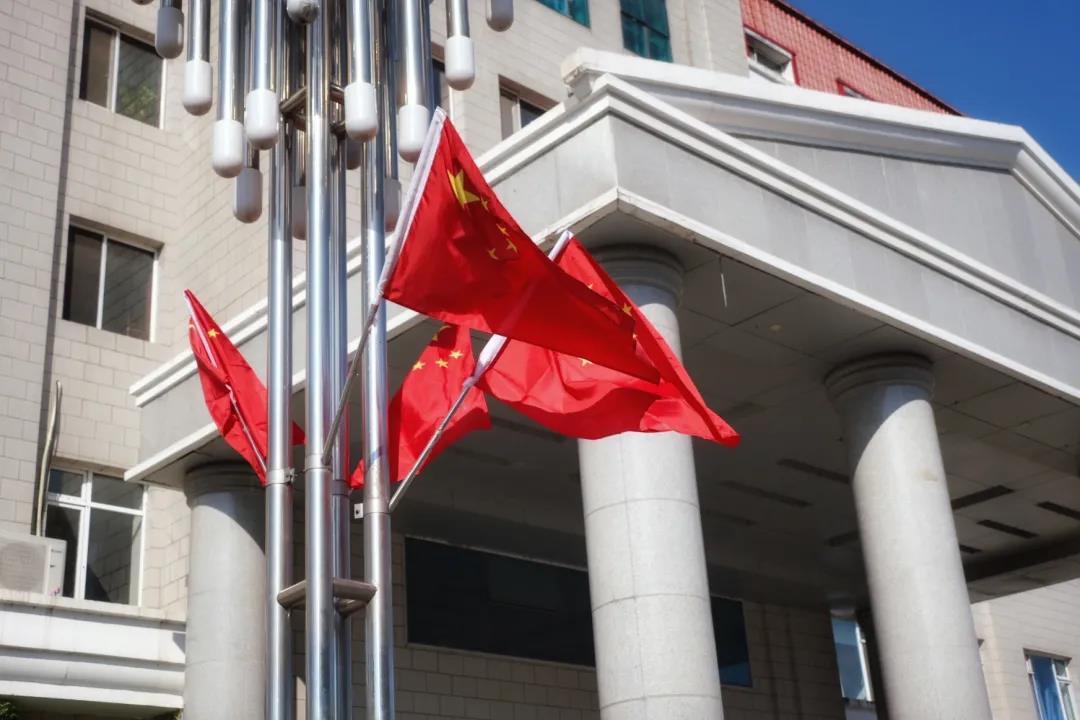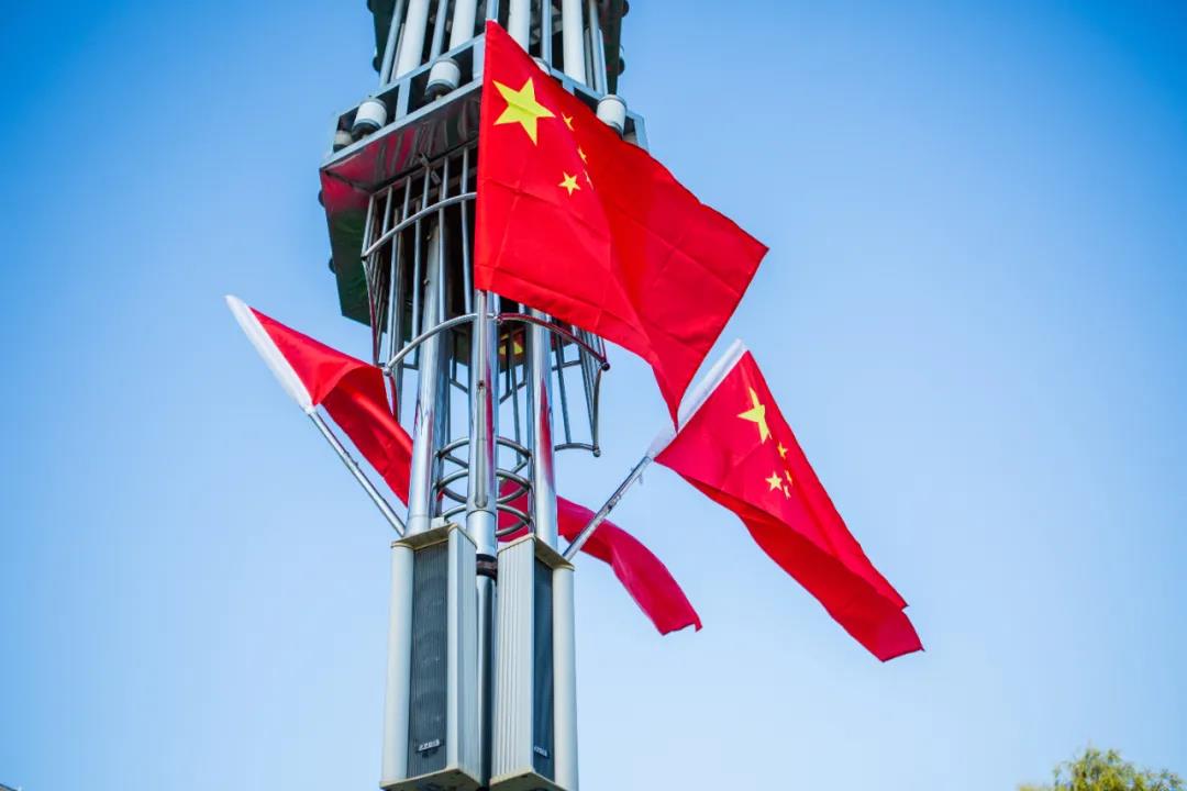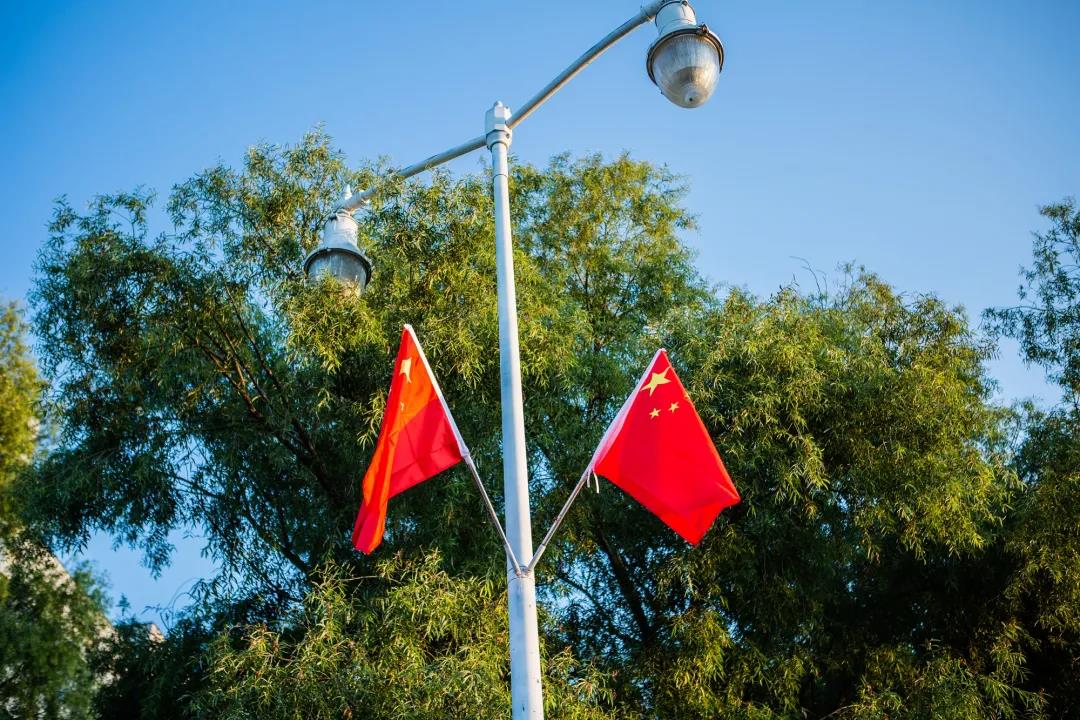举国同庆之际,五星红旗在校园迎风飘扬。随风荡漾着节日喜悦,涵养深沉的家国情怀,望着风中的那一抹抹“中国红”,内心激情澎湃而又骄傲自豪。