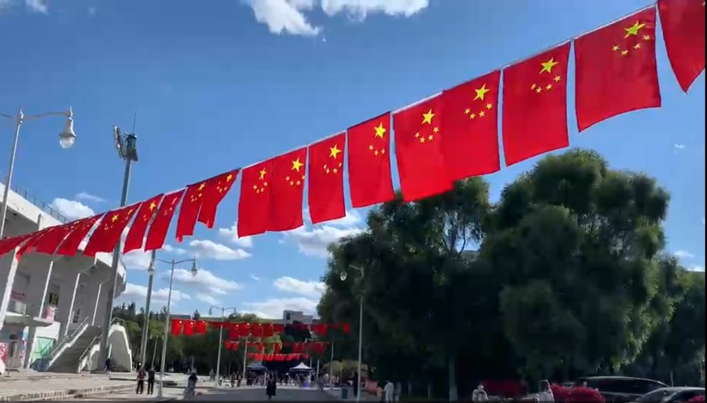 五星红旗“飘”起来,满目“中国红”激发强国志。为进一步增强全校师生的国旗意识和国家观念,激发爱国热情,振奋民族精神,国庆节前夕,校园悄然披上“中国红”,全面营造庄严喜庆、隆重热烈的节日氛围。在校园主干道、步行街、图书馆、学生食堂等公共场所,共悬挂国旗1000余面,汇聚成红色的海洋,为校园增添了一道别样的风景。同时,有效利用宣传标语、合影墙、电子屏等载体精心布置公共环境,“热烈庆祝中华人民共和国成立72周年”“祝福伟大祖国更加繁荣富强”“让爱国主义成为每一个中国人的坚定信念和精神依靠”“培养爱国之情、砥砺强国之志、实践报国之行”等标语,字字沁润心灵,句句励志激昂。秋日的校园,苍穹如镜骄阳艳好,红旗猎猎迎风招展,吸引众多师生驻足观看,纷纷与国旗同框拍照“打卡”留念,并在微信朋友圈晒图片、送祝福,迅速掀起满屏尽是“中国红”的爱国热潮。师生们纷纷感言:“放眼望去一片‘中国红’,置身其中,仰望国旗,为自己是一个中国人而骄傲。”“让我们自豪的‘中国红’,凝聚着中国人民攻坚克难、拼搏奋斗的精神力量。”“五星红旗见证了中华民族迎来了从站起来、富起来到强起来的伟大飞跃,永远激励我们奋勇前行!”……
