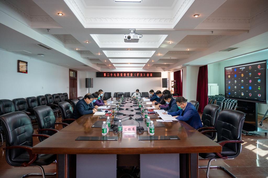 11月14日上午,学校召开第二十七次党委常委(扩大)会议。在行政楼5楼会议室主会场内,校党委书记孙先民、校党委副书记田成义、校党委副书记刘吉昌、副校长李晓梅、副校长李景义、副校长王巍、副校长赵大伟出席会议,校长郑秋鹛、办公室主任崔本强列席会议;各部门党政负责人线上列席会议。孙先民主持会议。
