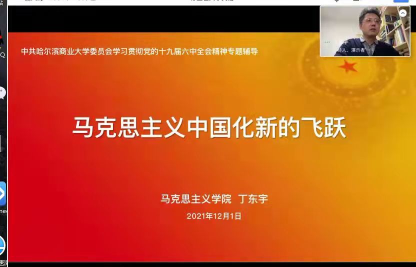 第二轮宣讲会上,学校学习贯彻党的十九届六中全会精神宣讲团成员、马克思主义学院教授丁东宇以“马克思主义中国化新的飞跃”为主题,从马克思主义中国化的重大意义及三个标志性成果、习近平新时代中国特色社会主义思想实现了马克思主义中国化新的飞跃、新时代不断推进马克思主义中国化就是坚持和发展当代中国马克思主义方面进行深入解读,宣讲提纲挈领、重点突出、语言生动、深入浅出,进一步促进与会教师对全会重大意义的认识更加全面、对全会精神的理解更加深刻、对全会重大部署的把握更加准确,从而坚定信念,在各自的岗位上锐意进取、埋头苦干,为推进学校改革发展,为全面建成社会主义现代化强国继续奋斗。