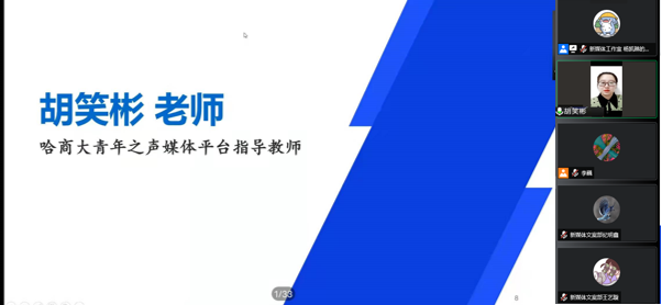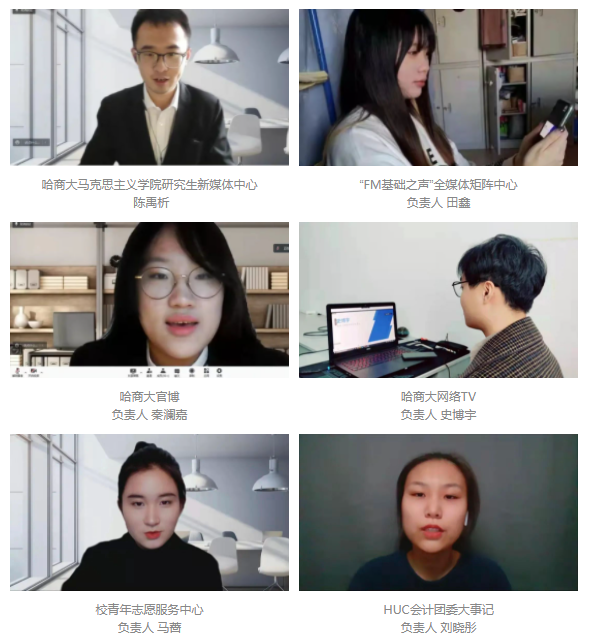 马克思主义学院研究生新媒体中心陈禹析、“FM基础之声”全媒体矩阵中心田鑫、哈尔滨商业大学官博秦澜嘉、哈商大网络TV史博宇、哈商大校青年志愿服务中心马蔷、HUC会计团委大事记刘晓彤等校院媒体平台学生负责人结合自身工作实际,围绕内容选择、栏目设定、排版编辑、运营模式、团队建设、宣传推广、短视频制作等方面积累的典型经验做法进行汇报交流,并就媒体平台定位、媒体运营流程、构建校园媒体矩阵、提升媒体服务功能、主动发声引领主流舆论等方面分享心得体会。