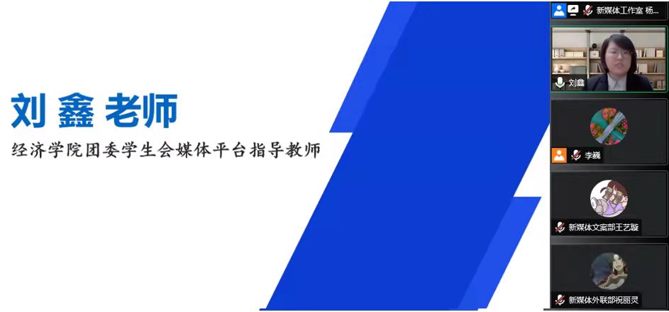 经济学院团委学生会媒体平台指导教师刘鑫从以贴近学生、双向互动为核心,赋予公众号生命力;以紧跟时政、多维宣传为指南,增强公众号吸引力;以打造品牌、选树典型为依托,深化公众号感召力等方面与大家分享新媒体运营工作体会。