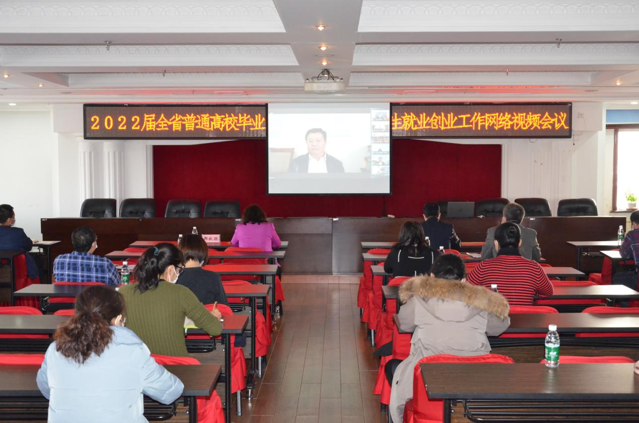 12月14日下午,黑龙江省教育厅、省人社厅共同召开2022届全省普通高校毕业生就业创业工作网络视频会议,我校在行政楼612会议室设立分会场。校党委书记孙先民、校长郑秋鹛、校党委副书记刘吉昌、副校长王巍、副校长赵大伟出席会议,学生工作部、学生处、教务处、及各学院相关负责人,大学生就业创业指导中心全体人员参加会议。