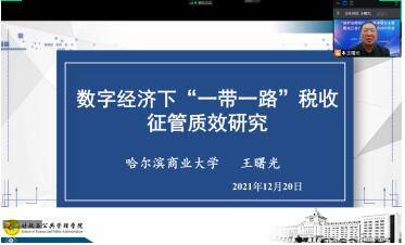 会上,3位专家作主旨报告演讲。王曙光教授以《数字经济下“一带一路”税收征管质效研究》为题,从5个方面释析数字经济下“一带一路”税收征管的研究背景、总体概况、基本特征、问题分析和因应策略。他认为,税收征管质效有助于推进“一带一路”沿线国家税收治理现代化,并提出完善数字税收征管法制、深化税收合作机制、强化涉外税收数据治理、筑牢数字税收征管思维等策略建议。
