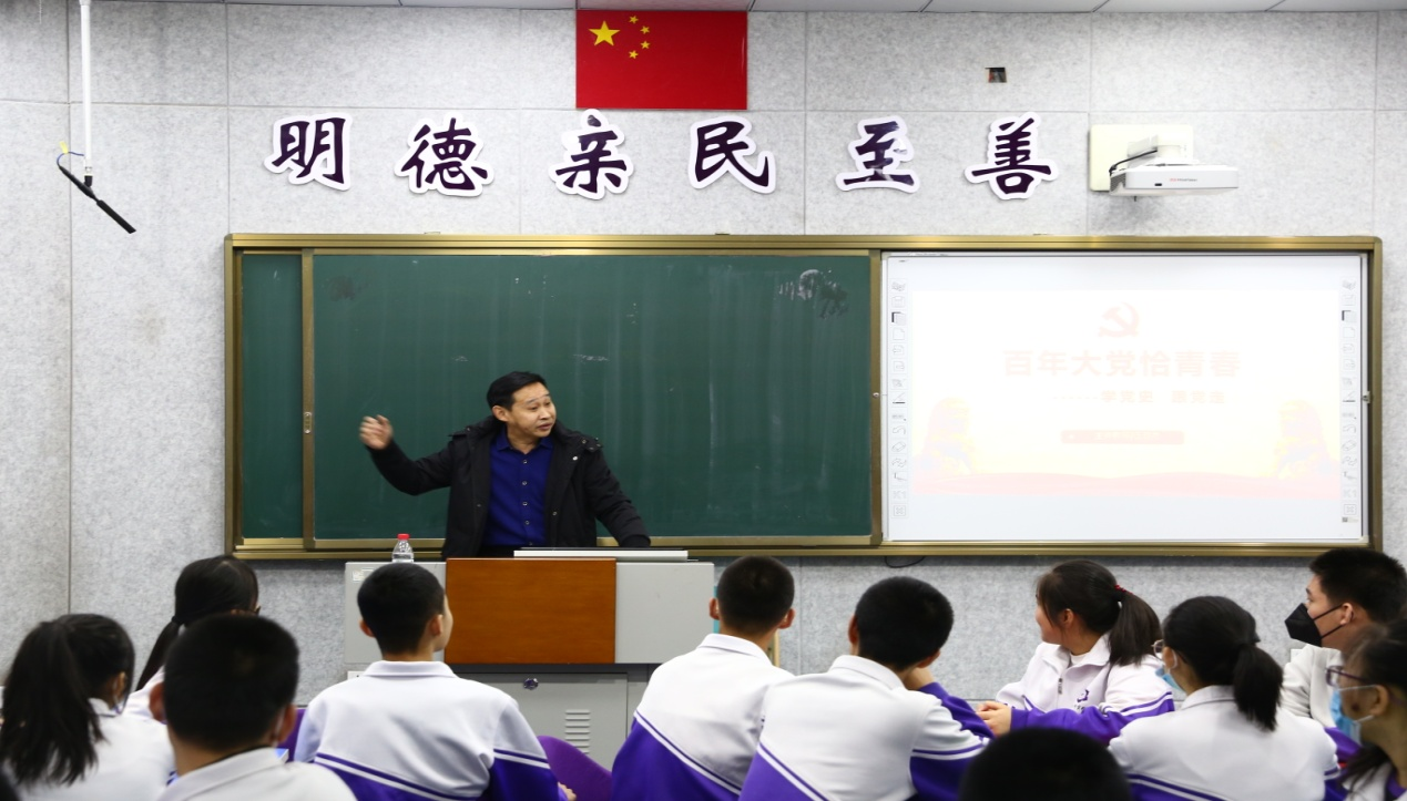 图:伍启杰副教授在哈尔滨第十中学开展“跟着教授学党史”专题讲座