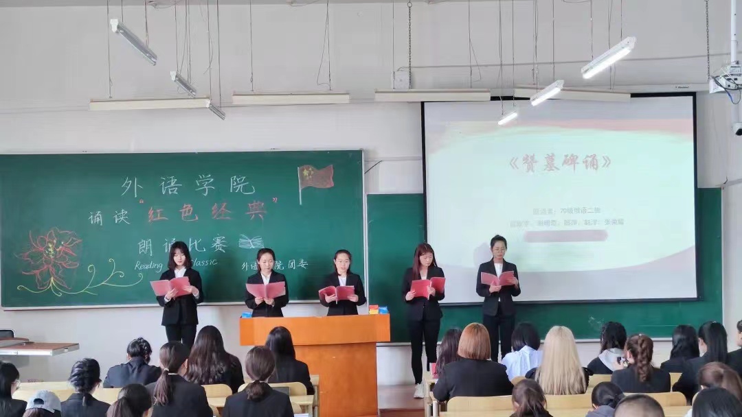 斗志昂扬同声唱。党委委员、支部书记带领全体师生党员重温入党誓词。举办外语之家新春联欢暨三十年教龄教师表彰大会、“不忘初心跟党走 红歌嘹亮颂党恩”主题党日活动、“党徽带胸前,誓词记心间”外语学院党员教师开展“戴党徽、亮身份、做表率”主题党日活动。各支部书记为党员佩戴党徽,师生党员以嘹亮的歌声、优美的旋律讴歌党的丰功伟绩,唱出了外语学院师生对党的真挚情感。