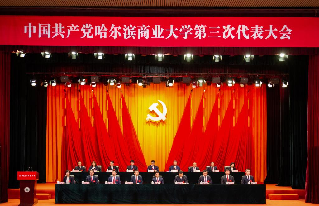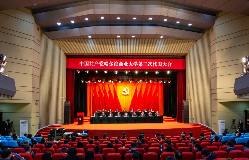 擘画新蓝图,奋进新征程。3月5日上午,中国共产党哈尔滨商业大学第三次代表大会在雄壮的国歌声中隆重开幕。大会的主题是:以习近平新时代中国特色社会主义思想为指导,认真贯彻落实习近平总书记关于教育的重要论述,坚持和加强党的全面领导,全面贯彻党的教育方针,坚持社会主义办学方向,落实立德树人根本任务,团结带领全校师生,把握发展大势强内涵,扎根龙江大地创一流,为建成商科特色鲜明的多科性高水平教学研究型大学而不懈奋斗。