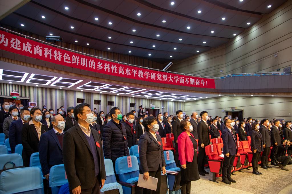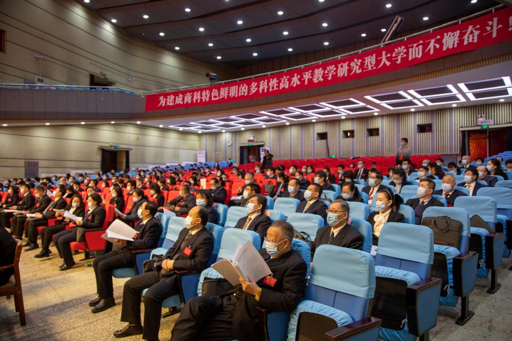 169名大会代表汇聚一堂,肩负使命、承载期望、共谋发展。大会主席团成员在主席台就座,校长郑秋鹛和各民主党派代表列席会议。